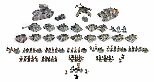 Let's start with a composite image of the largest army and biggest prize, The Steel Legion built under leadership of Dave Taylor: The Winner of this army is Colby Anger of Houston Texas.