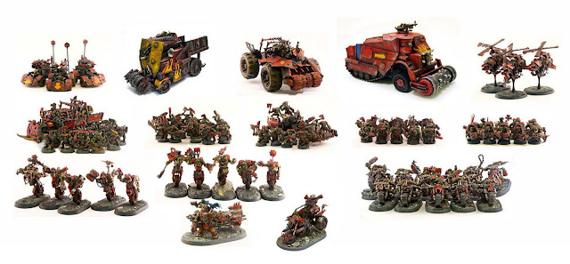 the wait is over. The Heroes of Armageddon project started in April and now, almost 4 months later, we have accomplished what we set out to do: 4 armies modeled and painted to the highest standards. We have here the true Heroes of Armageddon: the Steel Legion and Blood Angels opposite Ghazghkull Thraka's Horde and the Wazdakka Gutsmek's Speed Freaks.